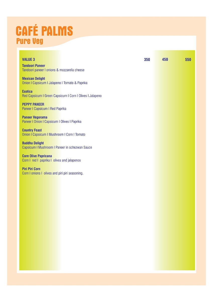 Cafe Palms - Restaurant & Banquet Hall Menu